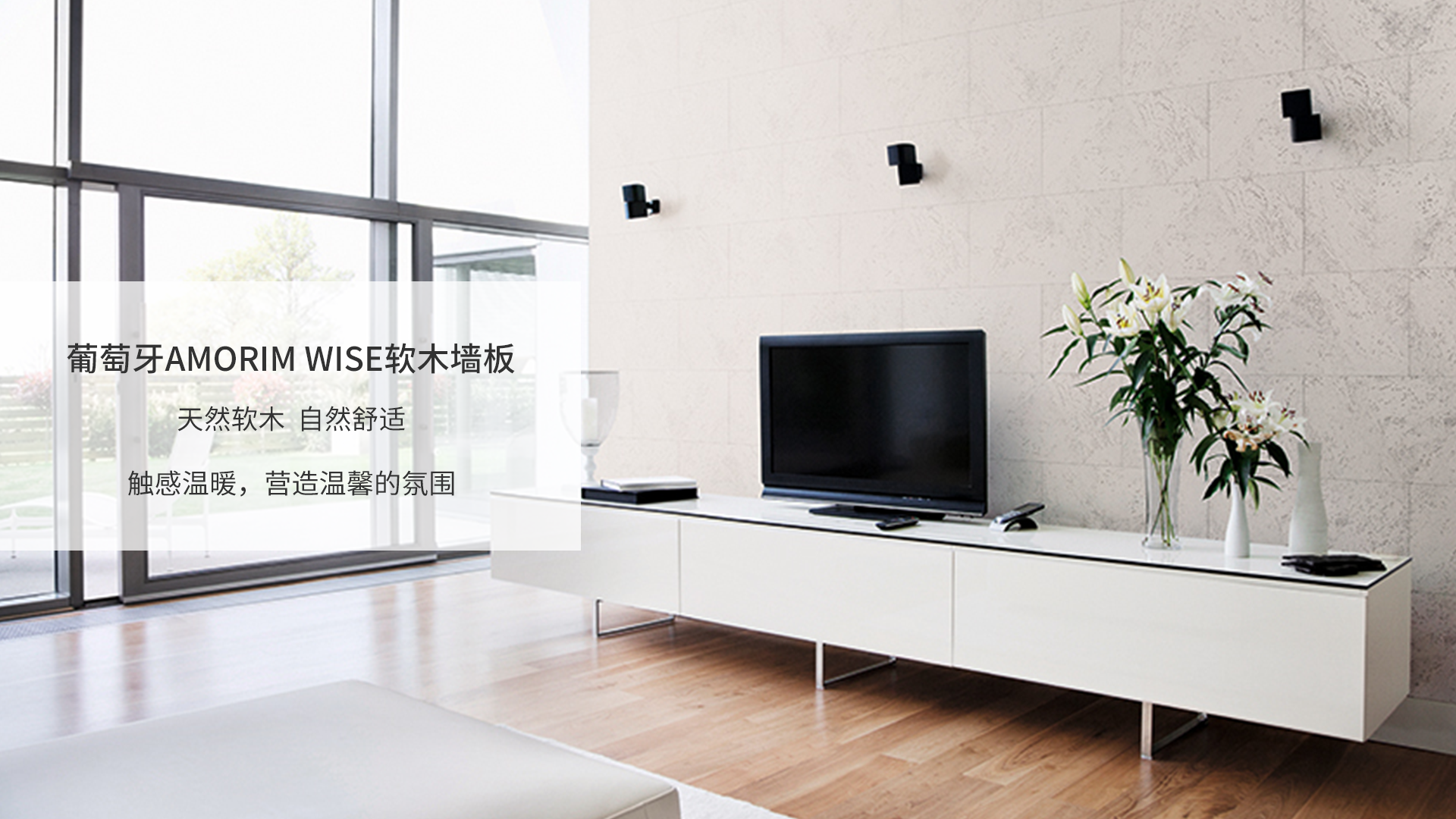Wise軟木墻板是一種以天然軟木為原材料的墻面裝飾材料,來自于全球著名的軟木產品供應商—阿莫林集團。豐富多彩的紋理和組合,親切舒適的溫馨氛圍,可用于墻面、吊頂、背景墻等處裝飾。
